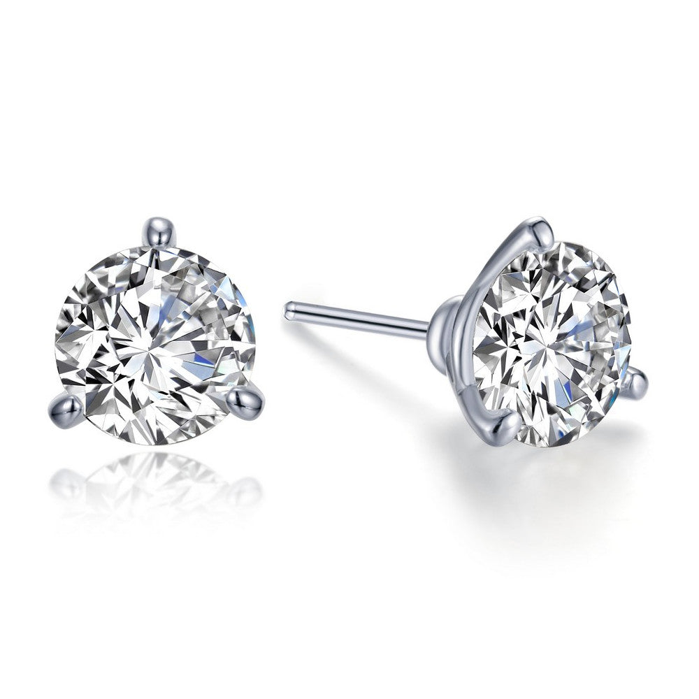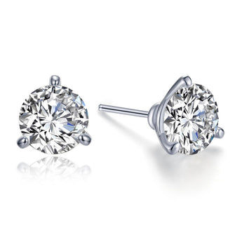 Sterling Silver Simulated Diamond 3-Prong Solitaire Stud Earrings