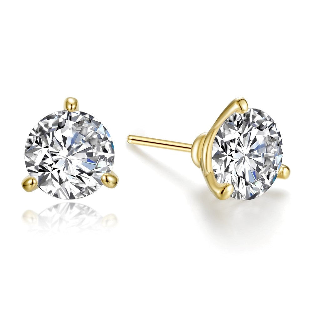 Sterling Silver/Yellow Gold-Plated Simulated Diamond 3-Prong Solitaire Stud Earrings