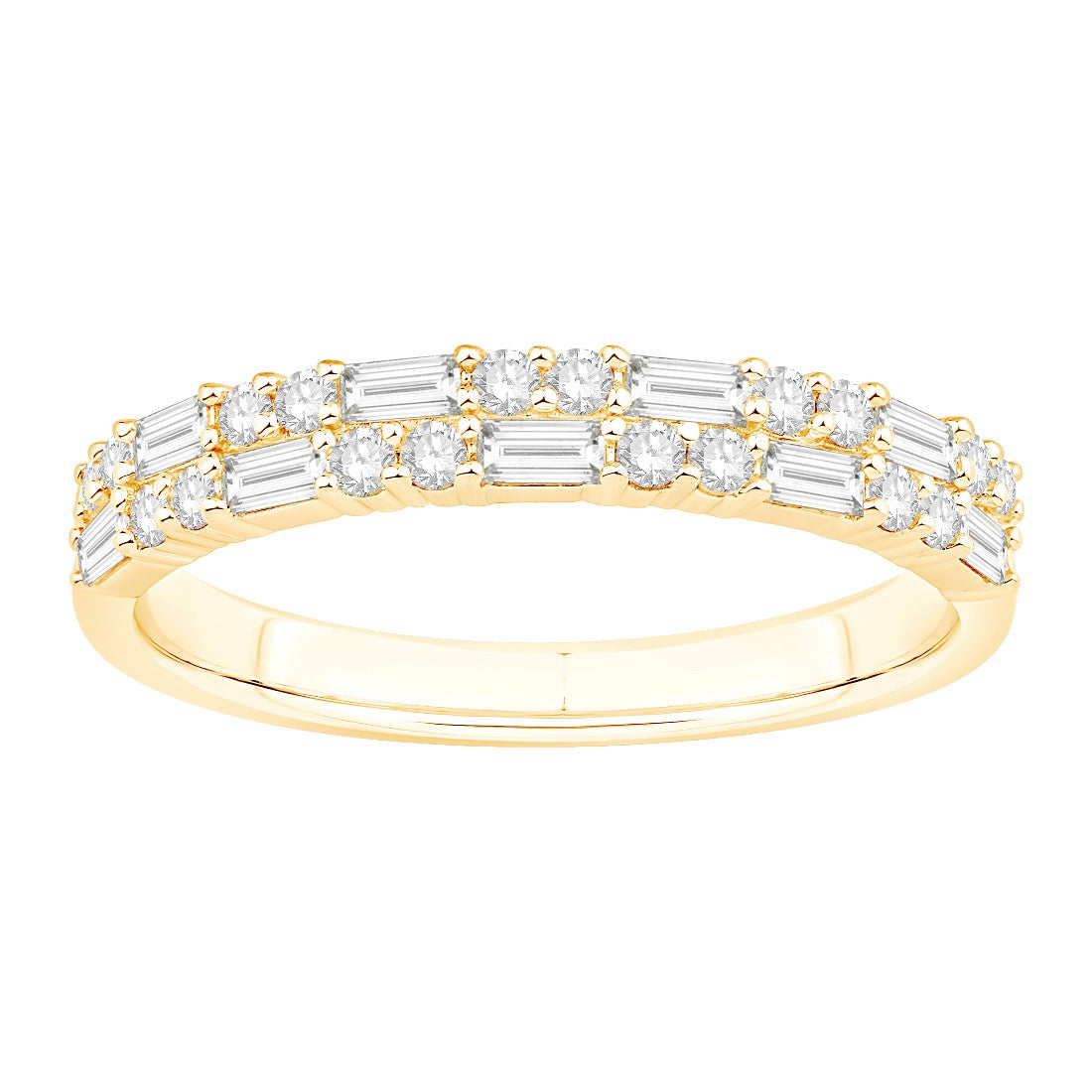 14 Karat Yellow Gold Two-Row Alternating Baguette Diamond Band