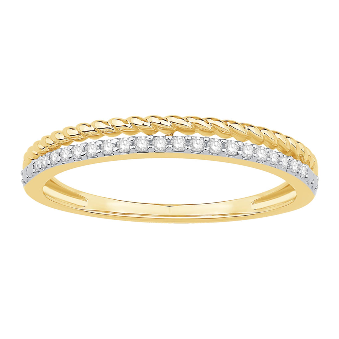 10 Karat Two Tone Yellow and White Gold Two-Row Diamond Rope Band