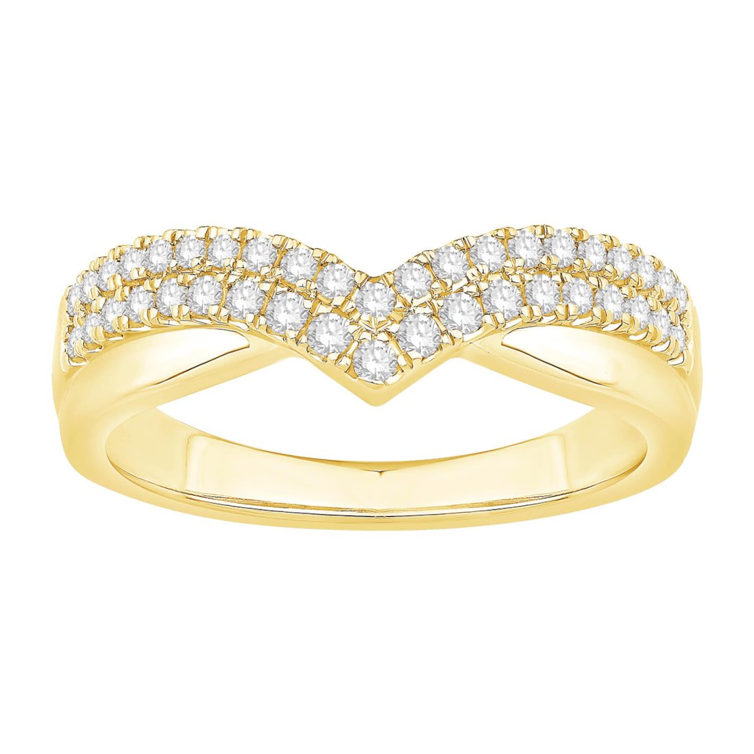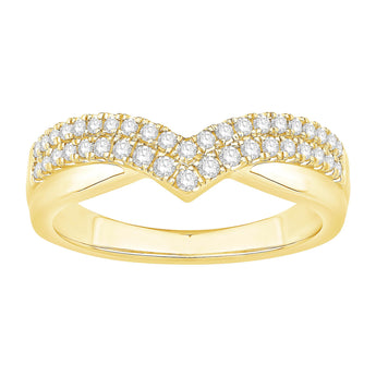 14 Karat Yellow Gold Two-Row Diamond Chevron Band