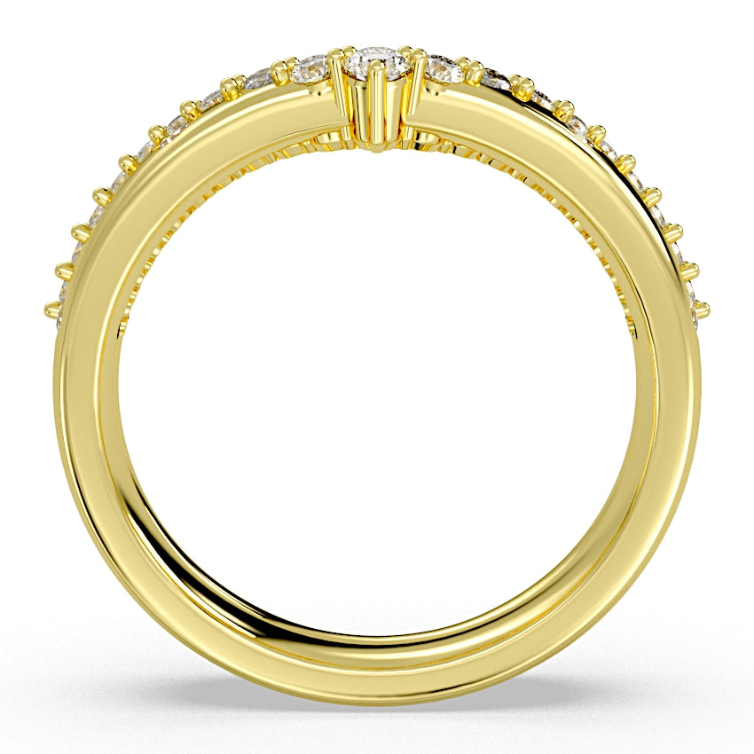 14 Karat Yellow Gold Two-Row Diamond Chevron Band