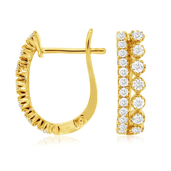 14 Karat Yellow Gold Two-Row Diamond Hoop Fashion Earrings