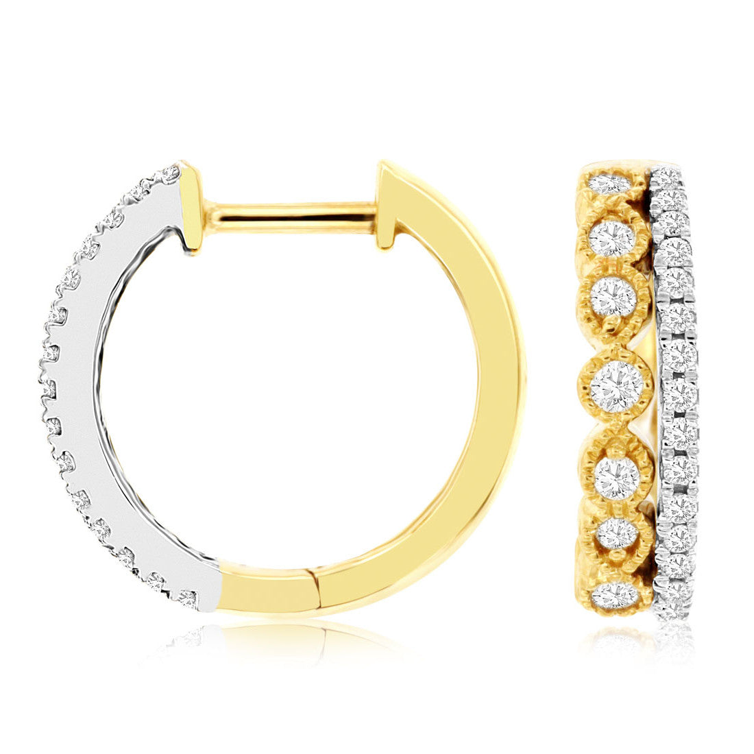 14 Karat Two-Tone Gold Two-Row Diamond Hoop Fashion Earrings
