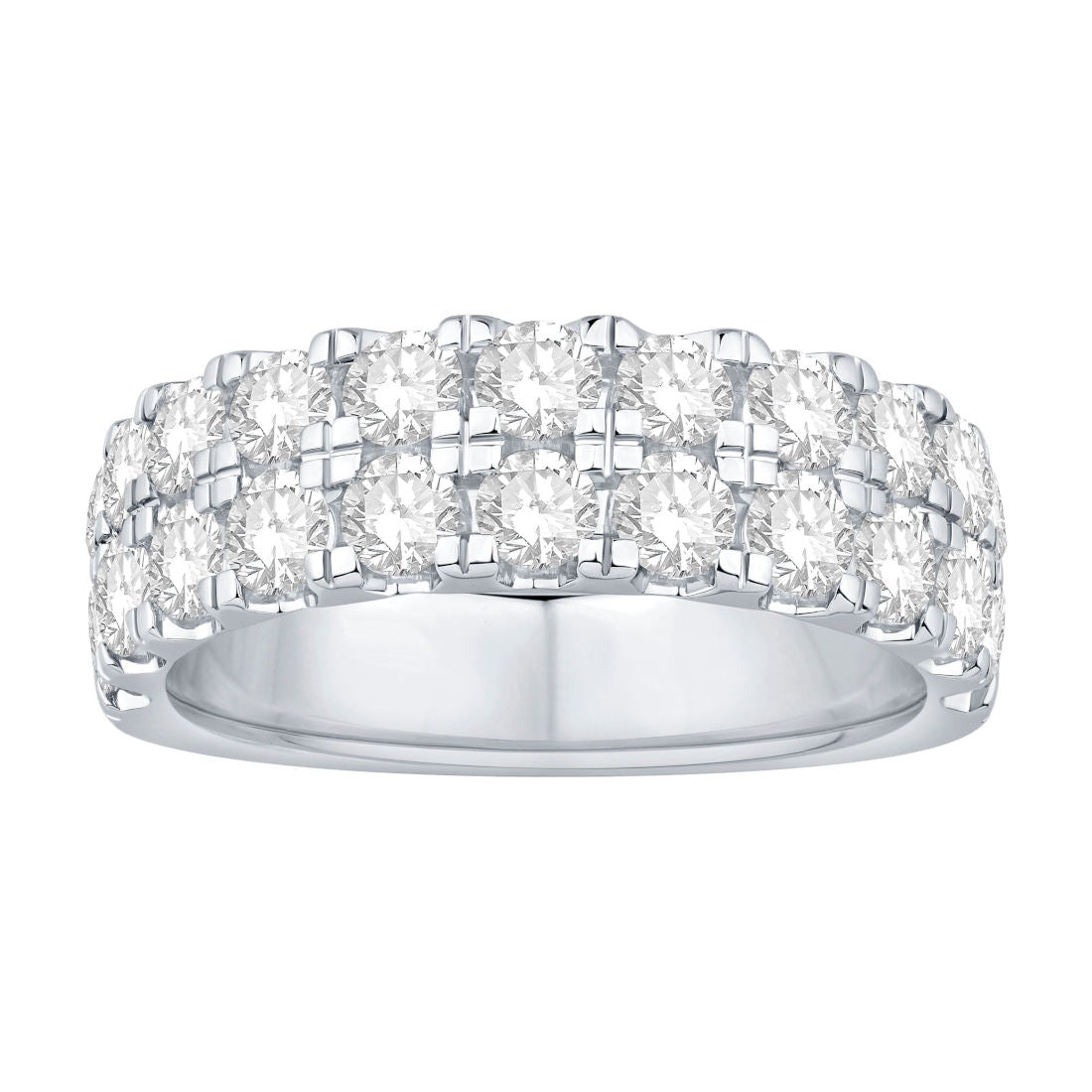 Bold. Brilliant. Beautiful. A dazzling classic fashioned in white gold, this stunner showcases two rows of sparkling round brilliant diamonds. Commanding attention with two carats of sparkle, this unforgettable fashion ring is a must-have addition to every jewelry collection.
