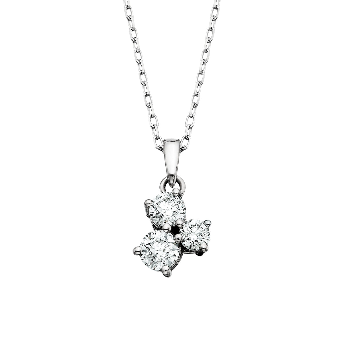 Elegance meets playful charm in this exquisite three-stone cluster pendant, where sophistication beautifully intertwines with whimsy. Adorned with brilliant white diamonds totaling 0.50 carats, each stone is artfully arranged to capture and reflect light from every angle. Available in 1/4; 1/2; and 3/4 carat total weights.