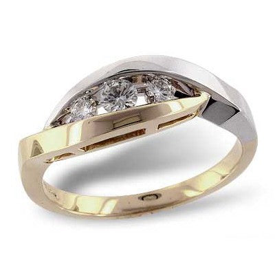 14 Karat Two-Tone White/Yellow Gold Three-Stone Diamond Fashion Ring