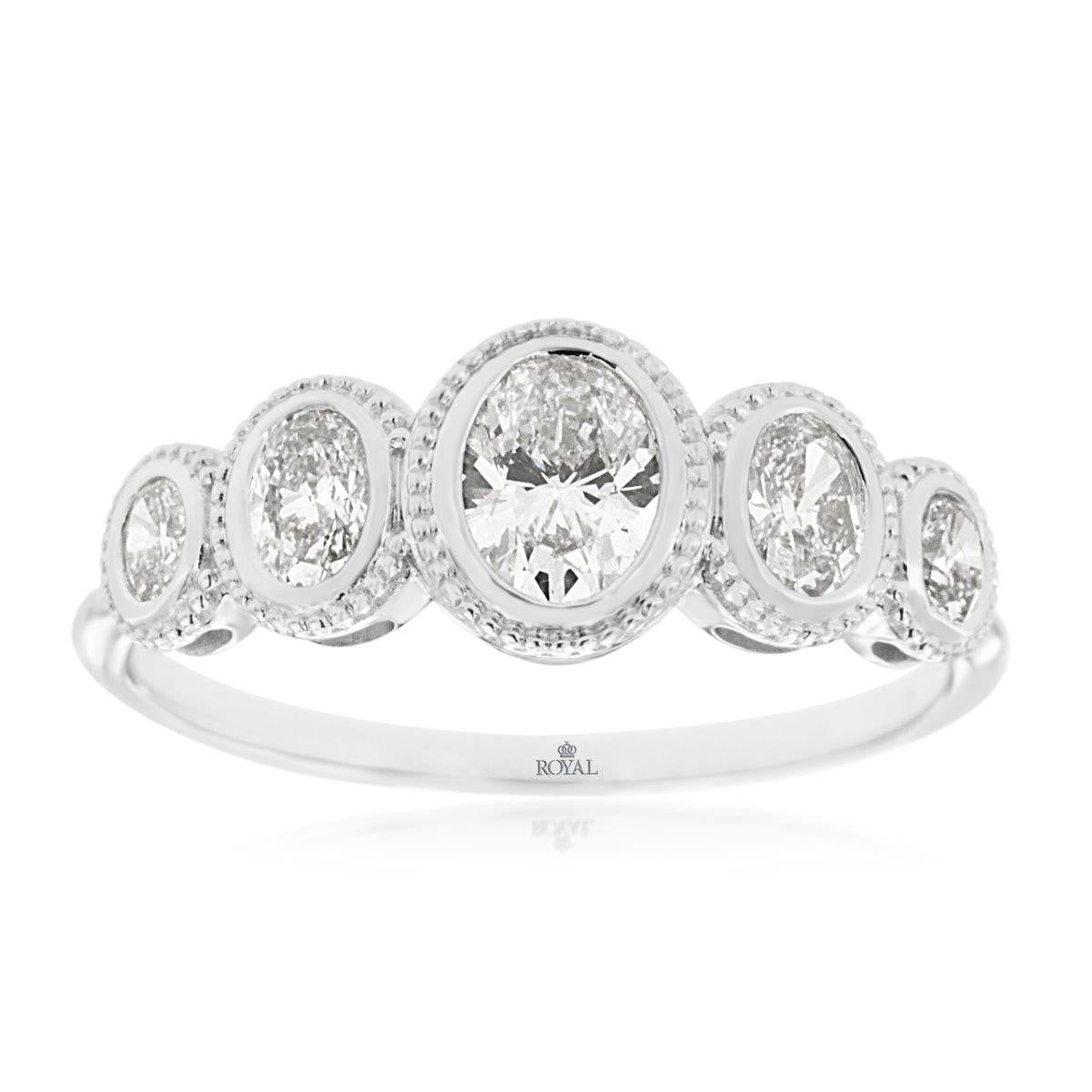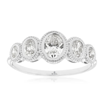 14 Karat White Gold Oval Diamond Five-Stone Fashion Ring