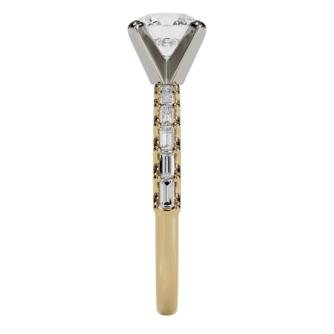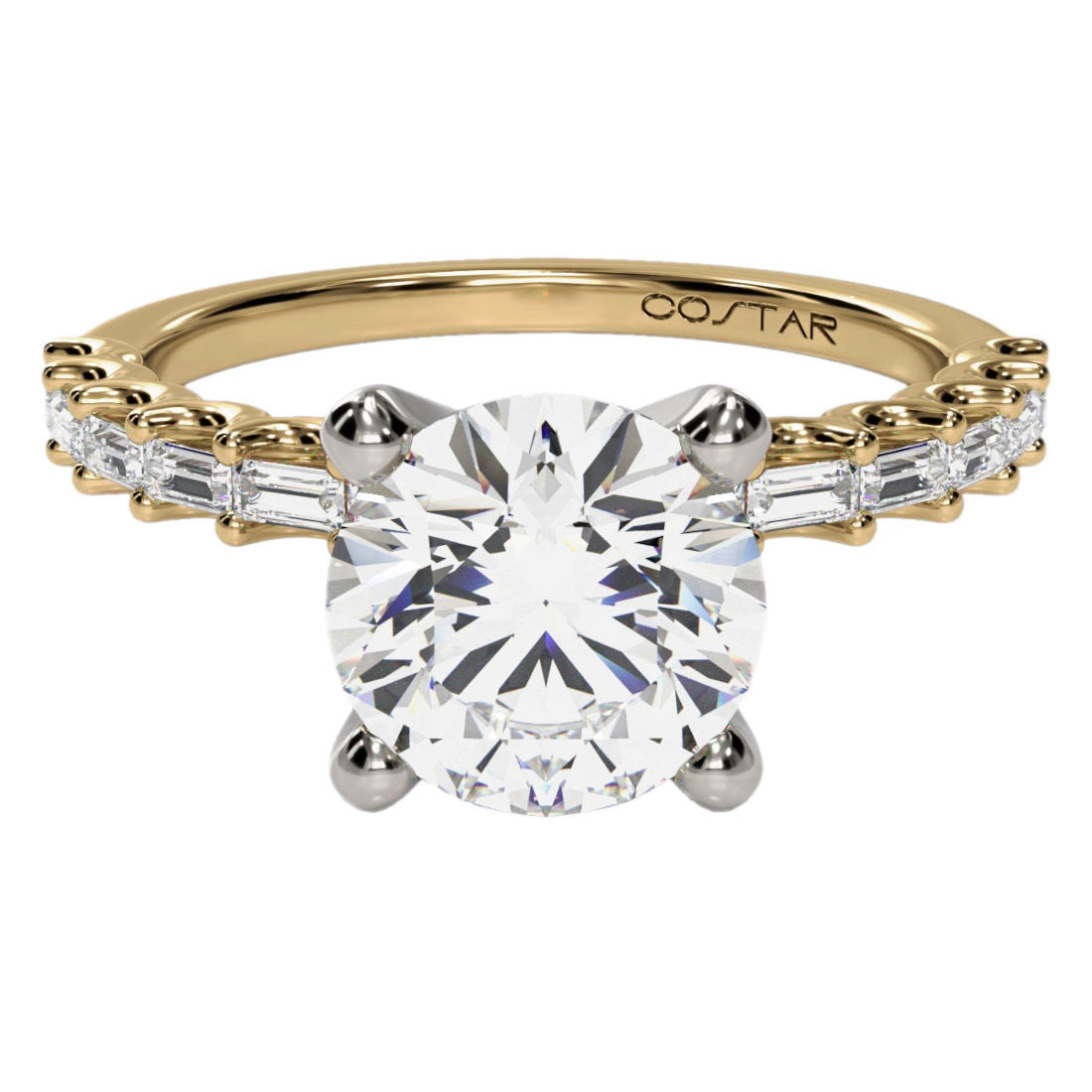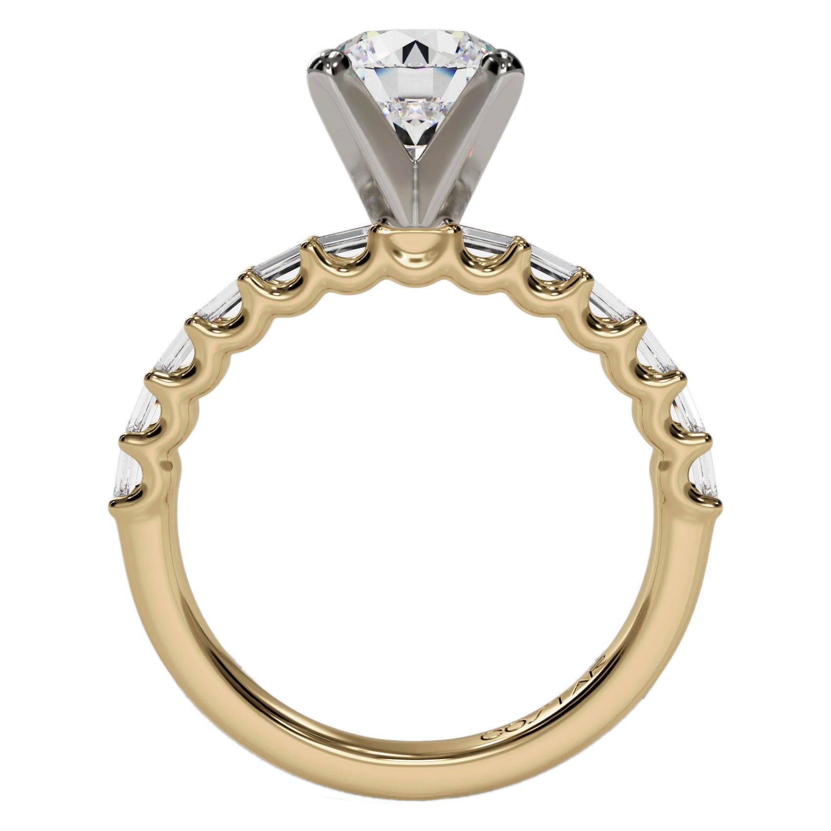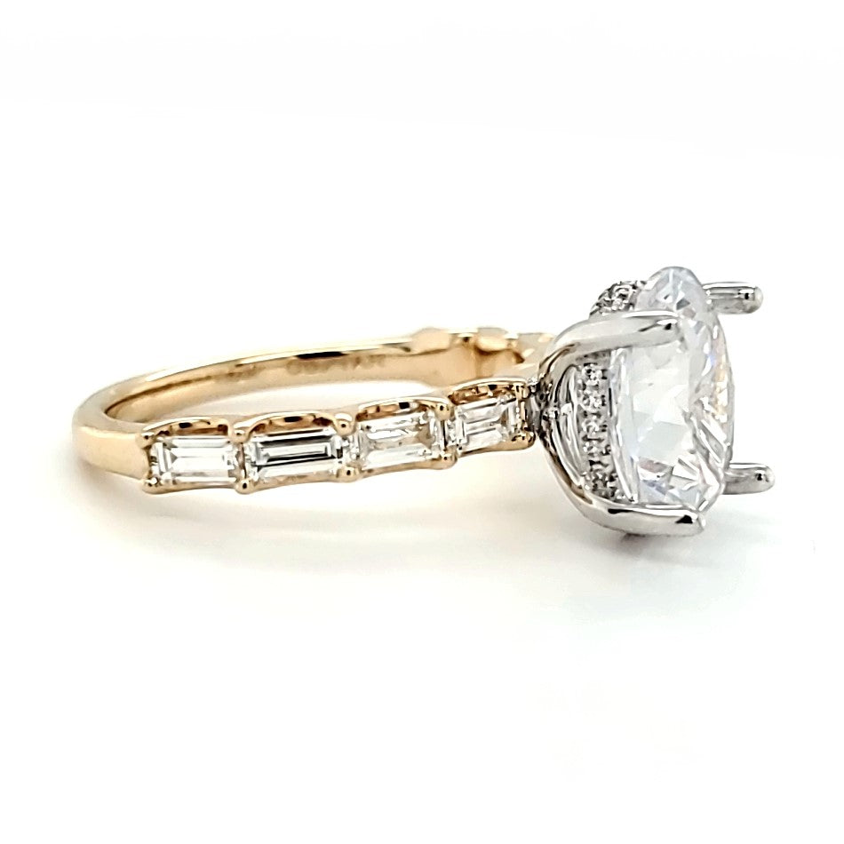 14 Karat Yellow/White Gold Hidden Halo Baguette Band Semi-Mount Engagement Ring