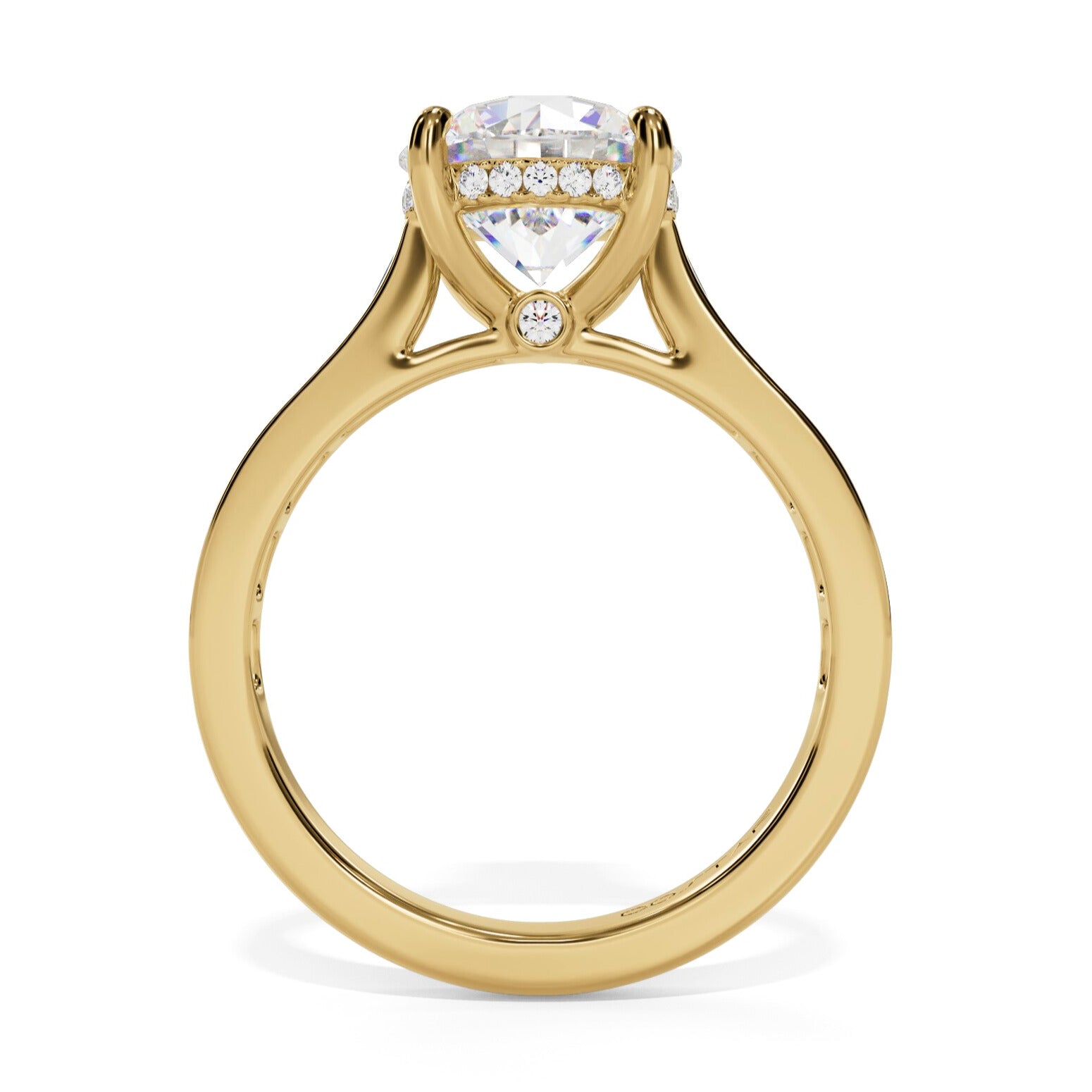 14 Karat Yellow Gold Hidden Halo Baguette Channel Semi-Mount Engagement Ring