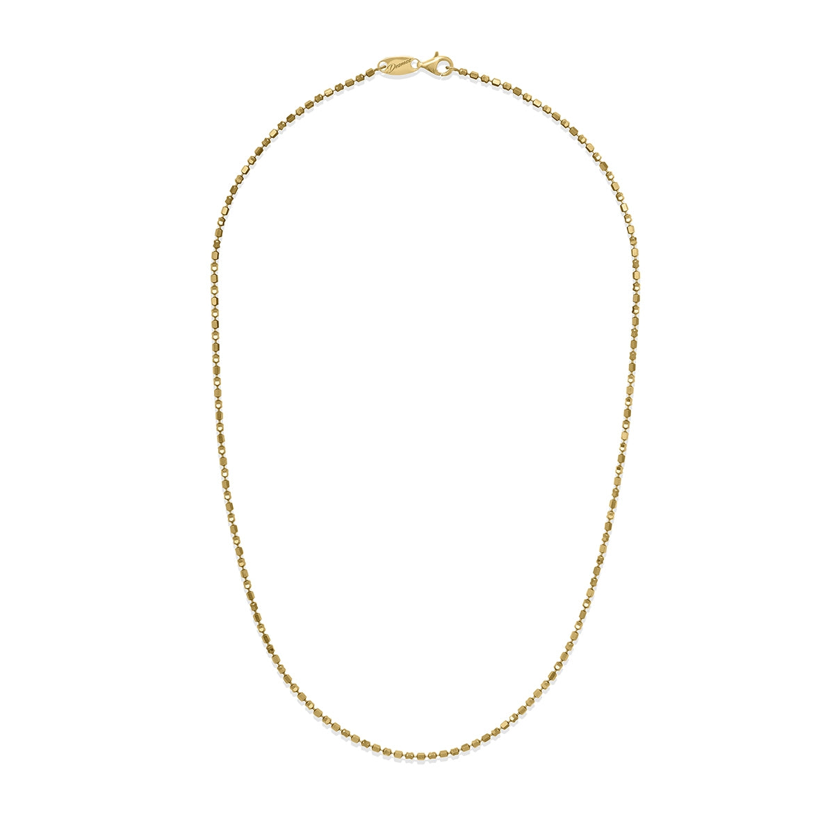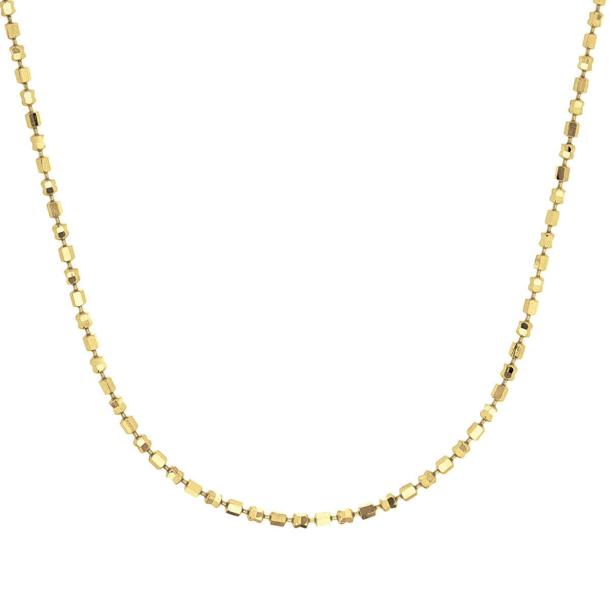 Brilliant mirror-style beads unite to form this stunning fashion chain, crafted in sterling silver plated with yellow gold. Unique diamond-cut cylinder beads reflect light and sparkle, providing a shining allure perfect for anything from formal occasions to casual outings. Designed for layering, you'll love styling this trendy piece with different outfits!