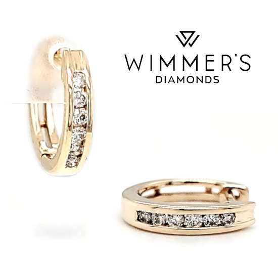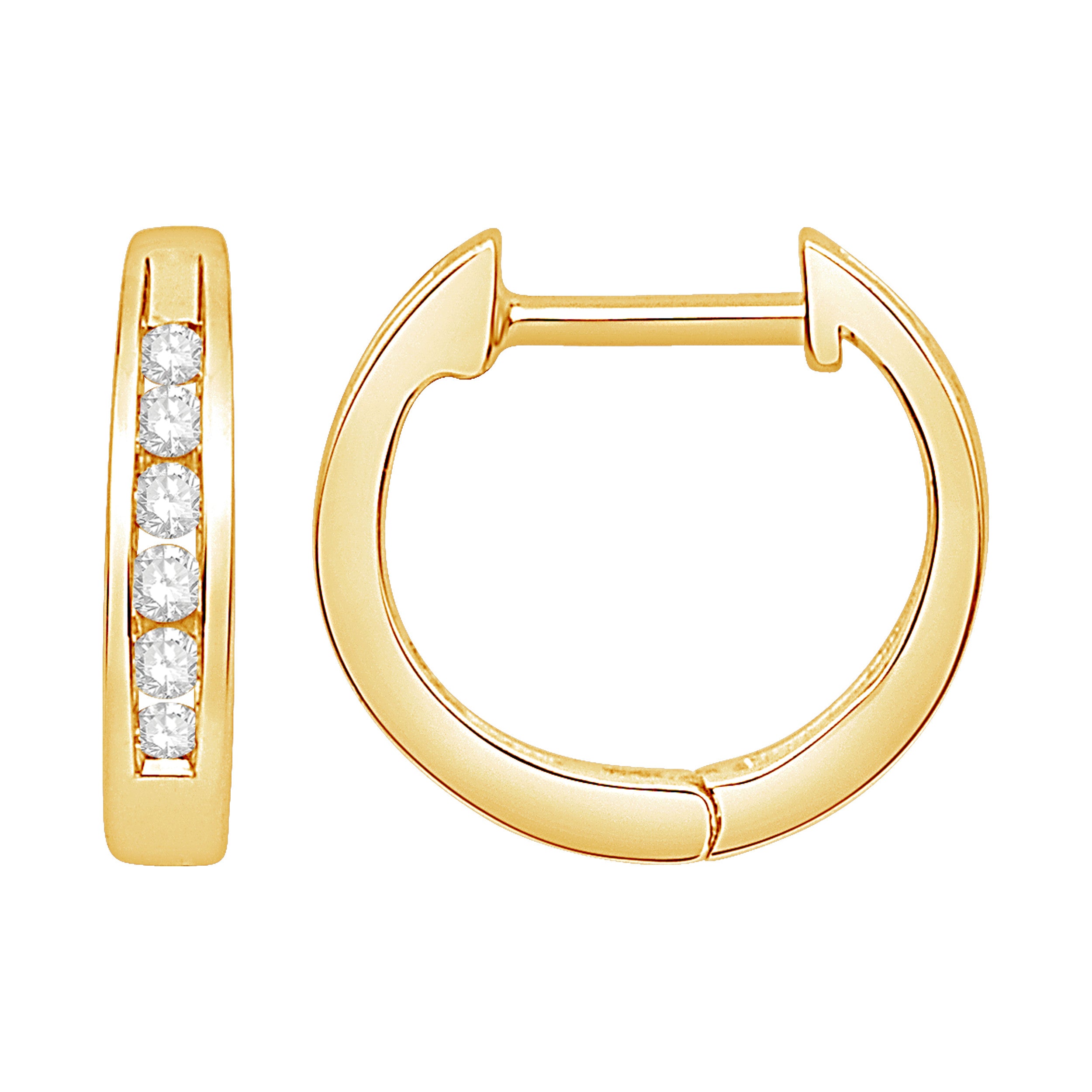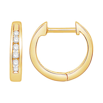 10 Karat Yellow Gold Channel-Set Diamond Huggie Hoop Earrings
