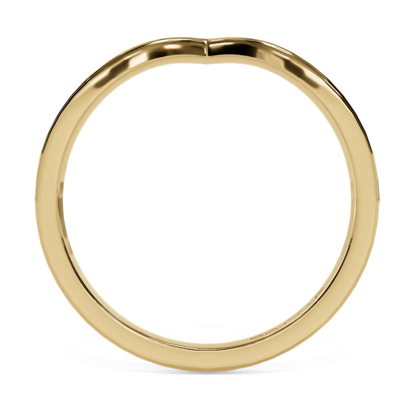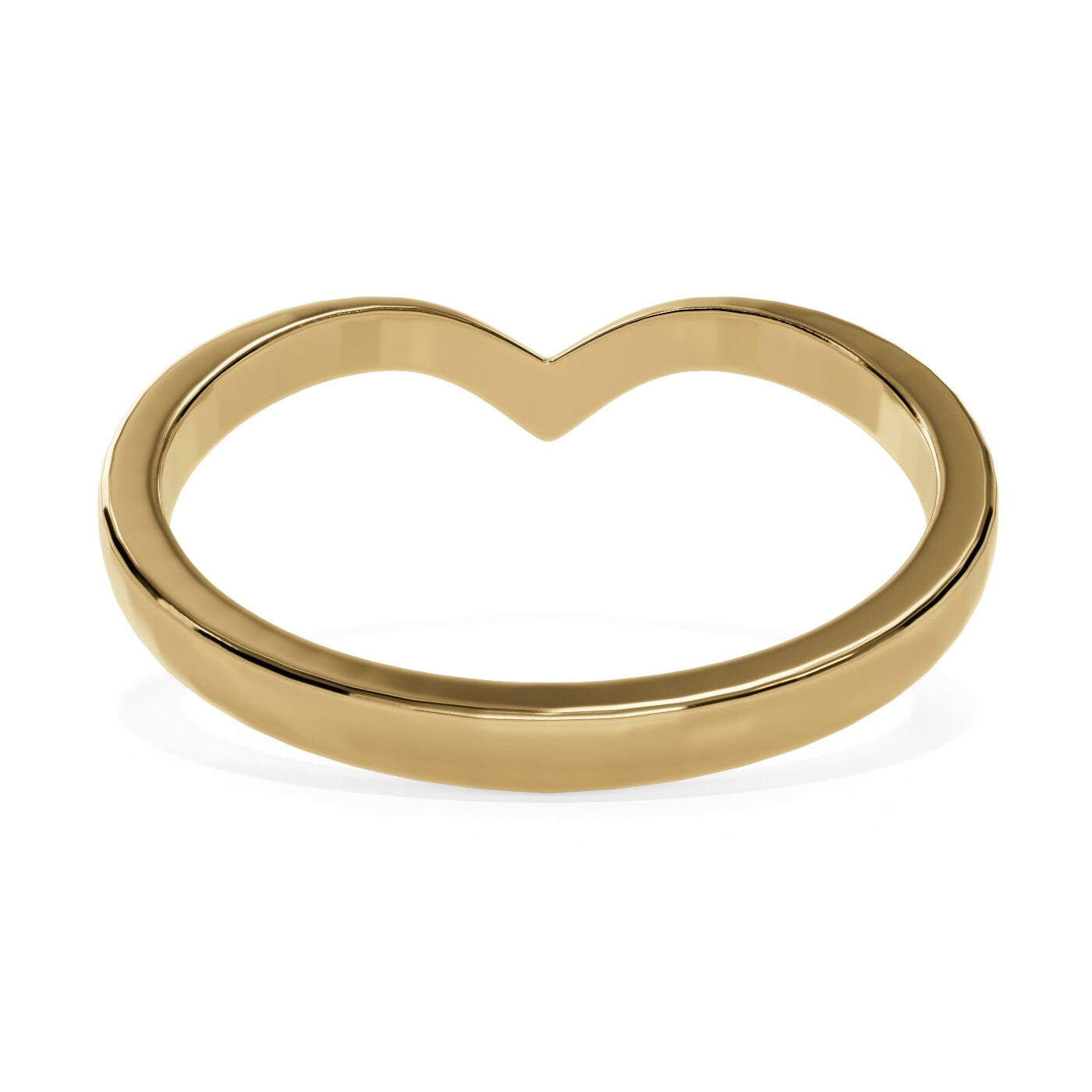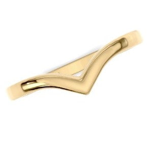 Stylish and sophisticated. A smooth band of polished yellow gold cascades down the finger in a curved chevron shape. This modern band is the perfect shape to pair with many engagement ring styles, or to make a sleek fashion statement on its own!