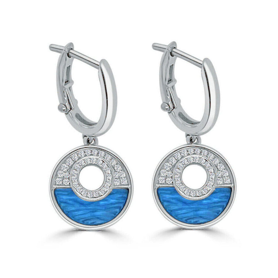 0.17ctw 14kwg Mini "Marbella" Blue Topaz and Diamond Dangle Earrings w/Diamonds of G-H/SI1