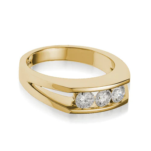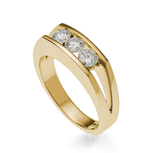 18 Karat Yellow Gold Designer Three-Stone Diamond Ring