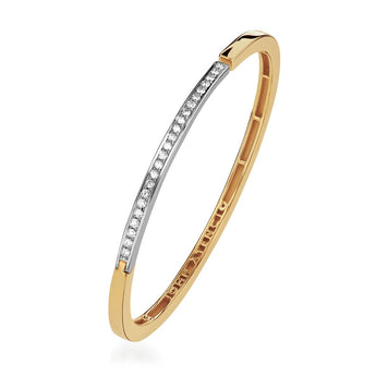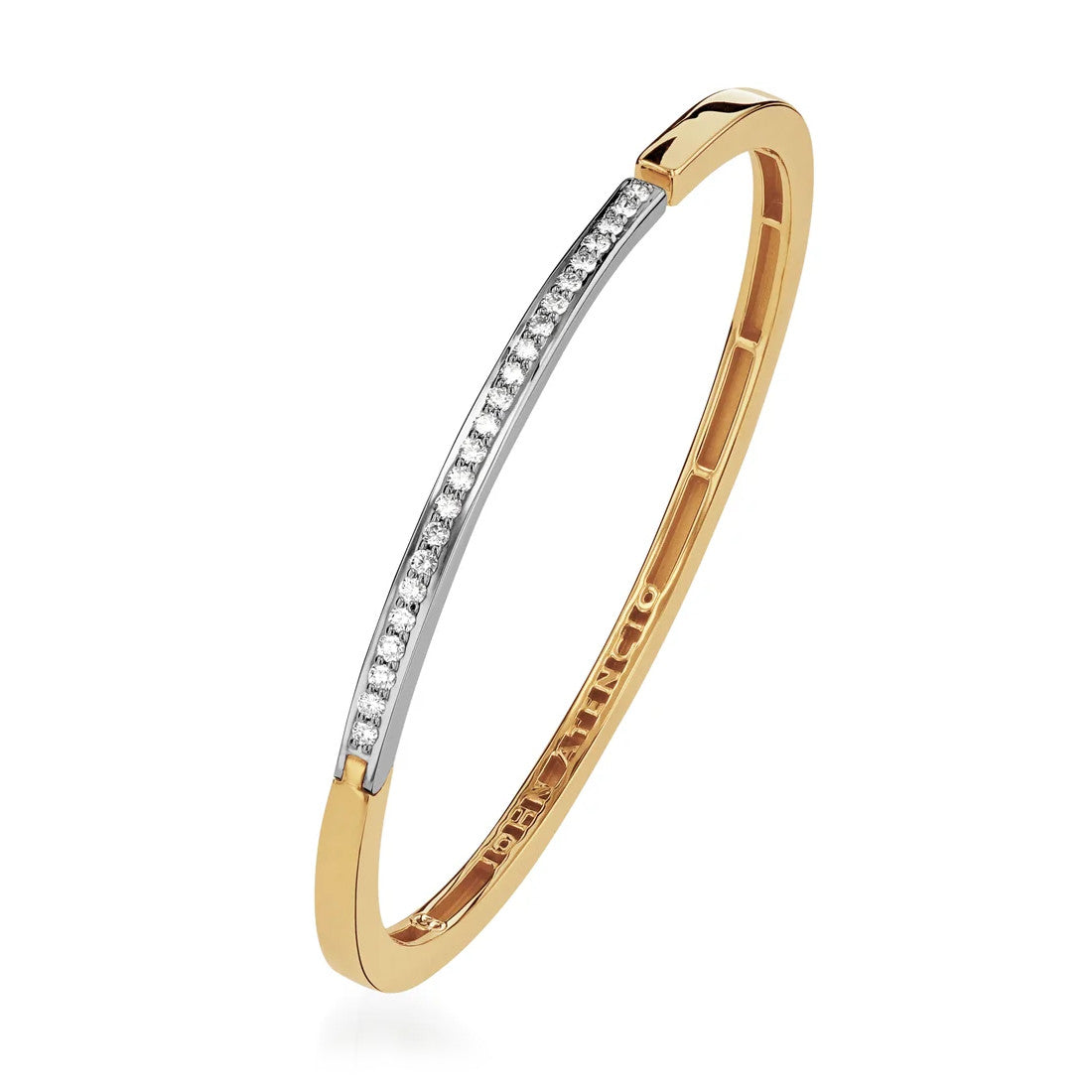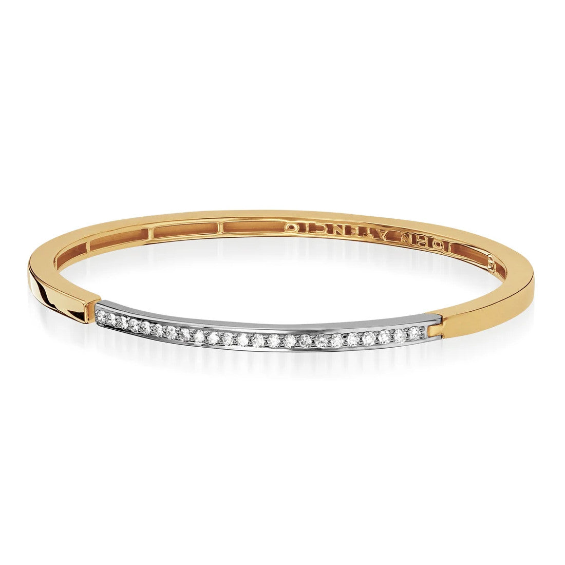 14 Karat Yellow Gold Designer Diamond Pavé Bar Hinged Bangle Bracelet