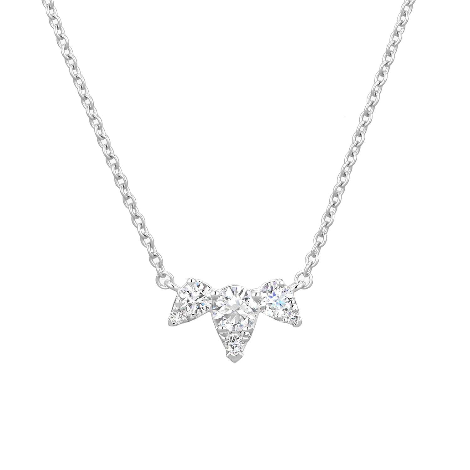 A fresh take on the classic diamond pendant, the Aerial Triple Diamond Necklace is a sophisticated style with a fashionable twist. Three diamond encrusted teardrops hang from a lightweight chain to create a piece that’s perfect for layering