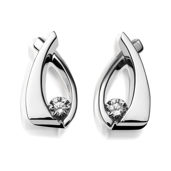 14 Karat White Gold Designer Petite Diamond Stud Earrings