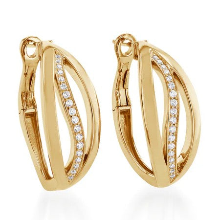 14 Karat Yellow Gold Designer Diamond Fashion Hoop Earrings