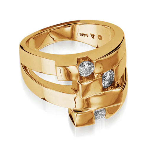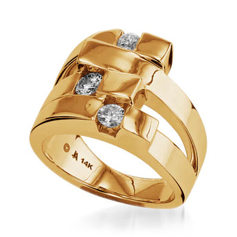 14 Karat Yellow Gold Wide Diamond Fashion Ring