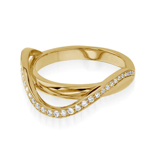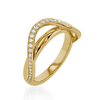 14 Karat Yellow Gold Designer Diamond S-Curve Fashion Ring