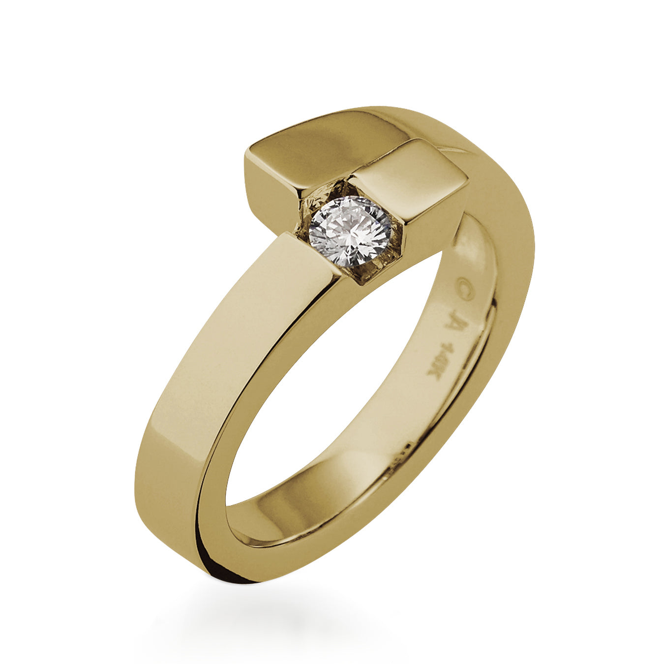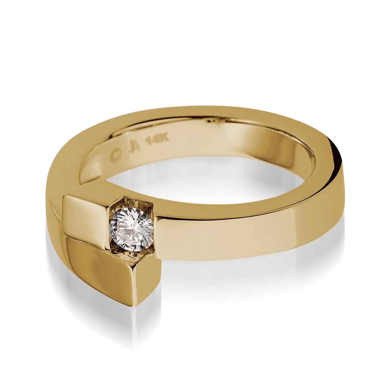 14 Karat Yellow Gold Designer Solitaire Diamond Fashion Ring