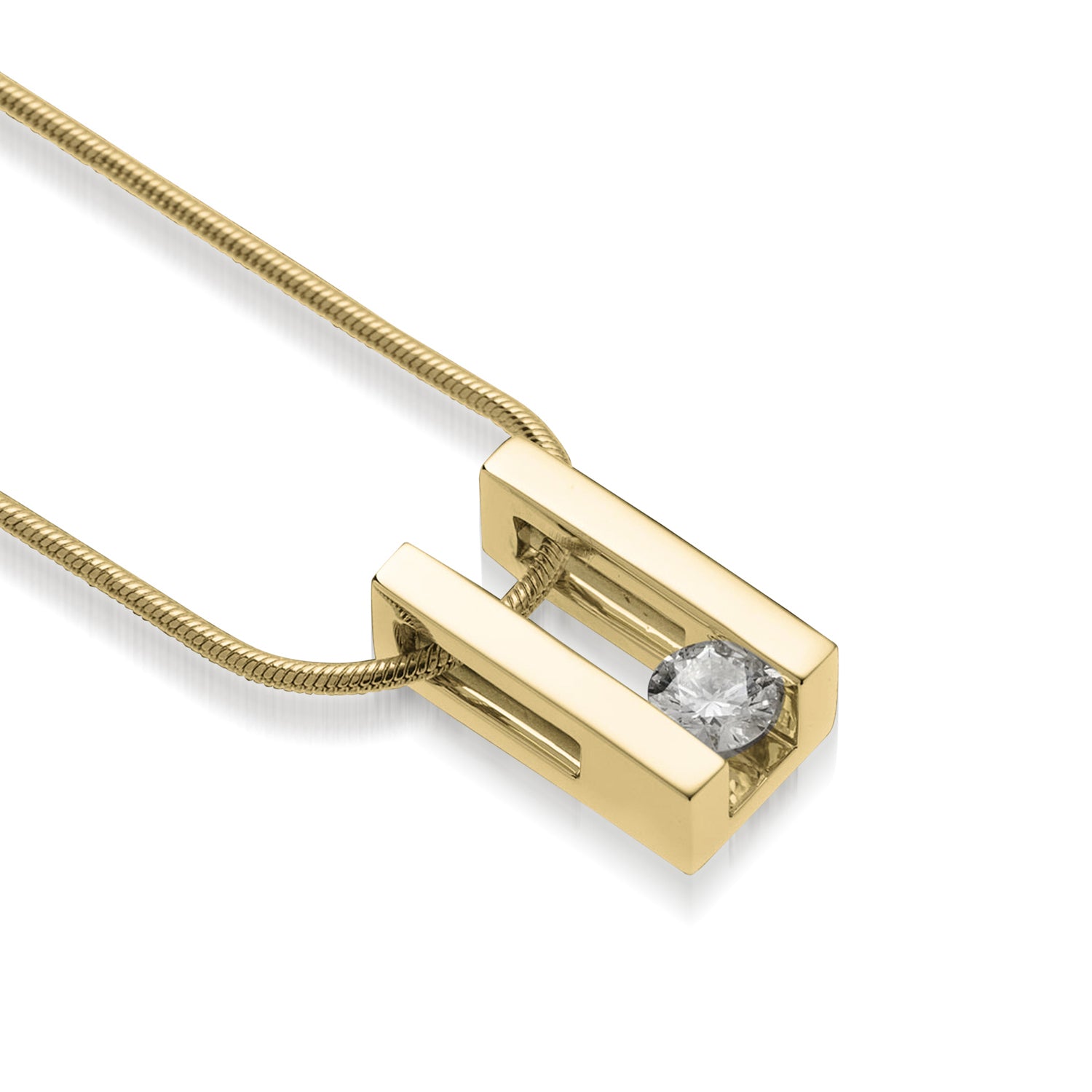 14 Karat Yellow Gold Designer Single Stone Pendant Mounting on an 18" Franco Chain