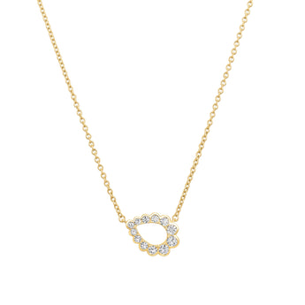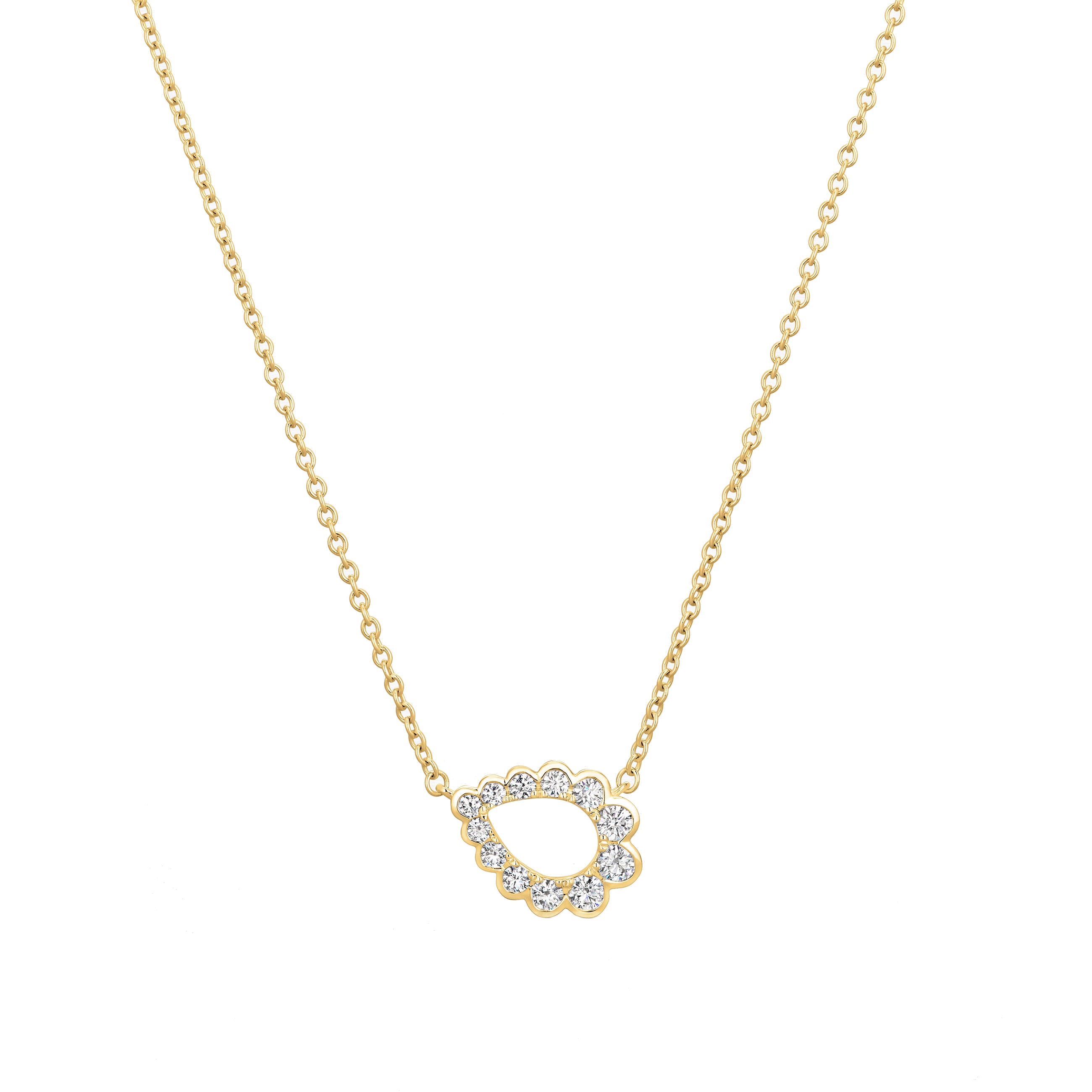 The Aerial Regal Teardrop Necklace is reminiscent of a treasured heirloom with its vintage-inspired design. A teardrop shaped pendant decorates a delicate gold chain, accented with decorative scalloped edges for a feminine look.