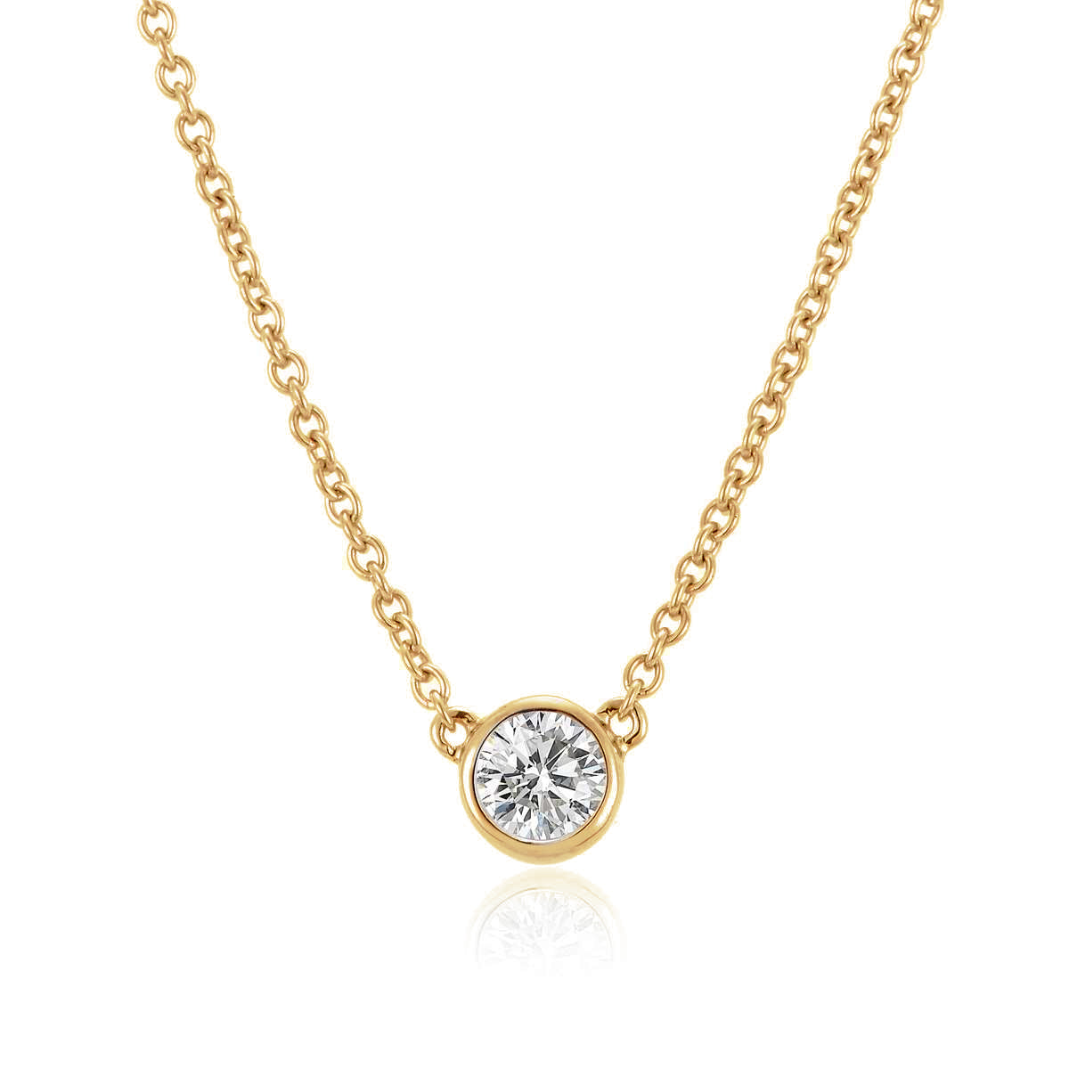 14 Karat Yellow Gold Bezel-Set Solitaire Diamond 16" Necklace