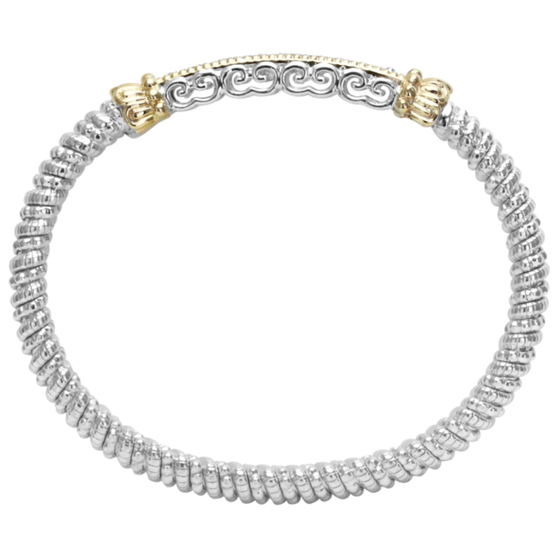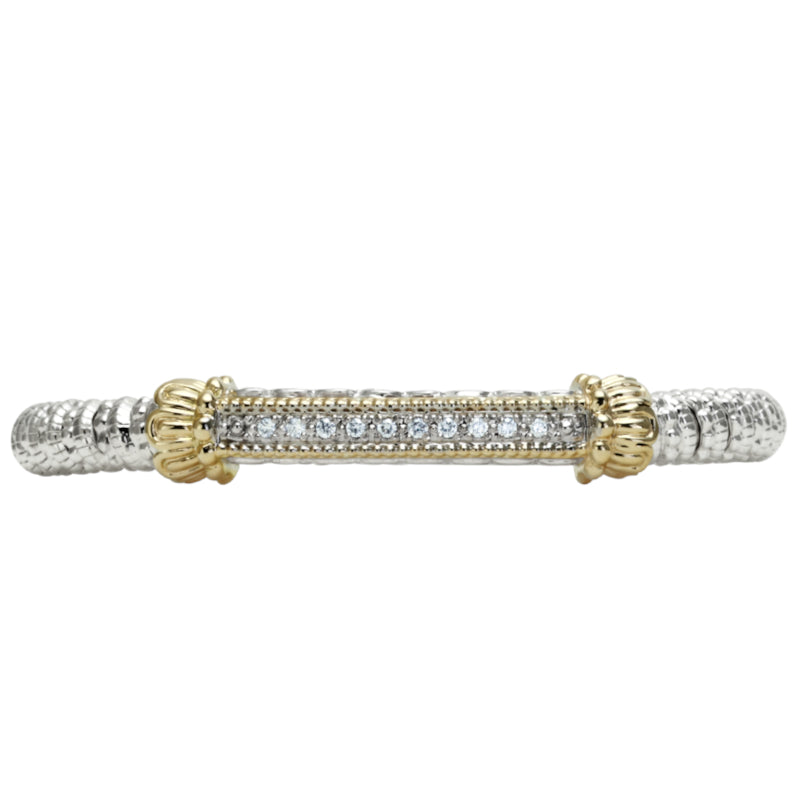 Sterling Silver/14 Karat Yellow Gold Diamond Bar Stackable Bangle Bracelet