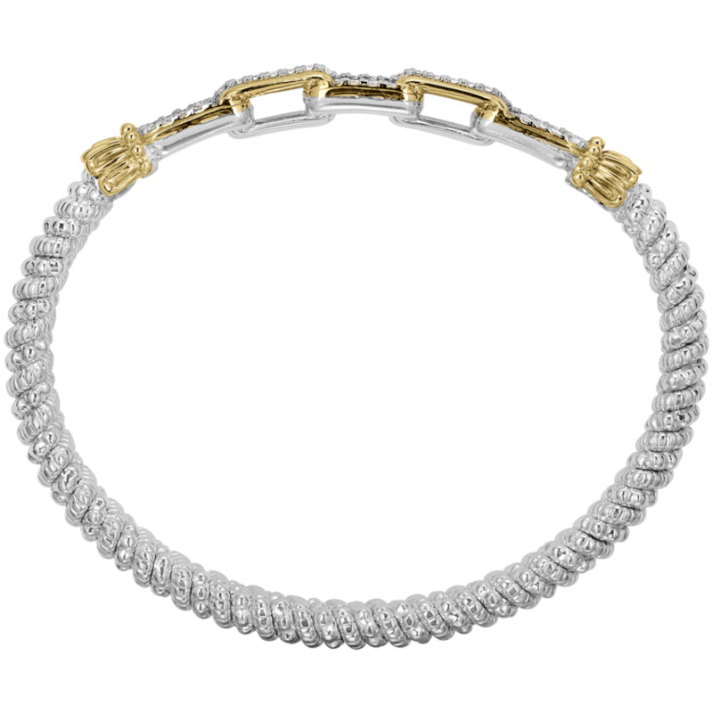 Sterling Silver/14 Karat Yellow Gold Diamond Link Stackable Bangle Bracelet