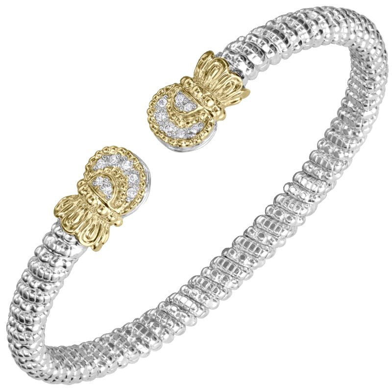 From our best-selling Essentials collection, an open cuff stackable bracelet is crafted in 14K gold and sterling silver. Enhanced by a Moiré Beaded pattern and crown motifs, diamonds further elevate the look with sparkling style.