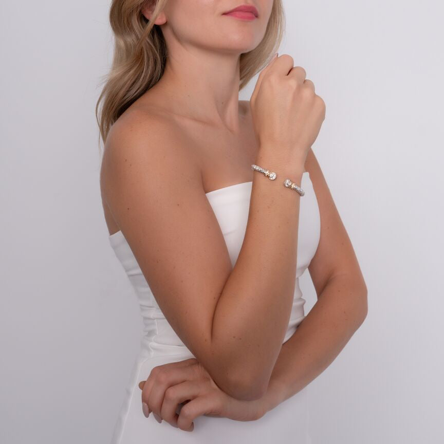 Sterling Silver/14 Karat Yellow Gold Diamond Stackable Cuff Bracelet