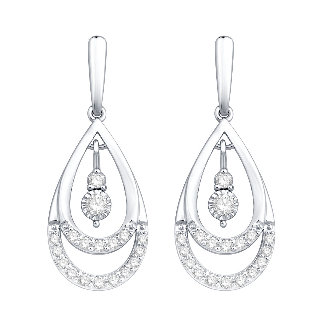 10 Karat White Gold Double Pear-shape Diamond Motion Fashion Dangle Earrings