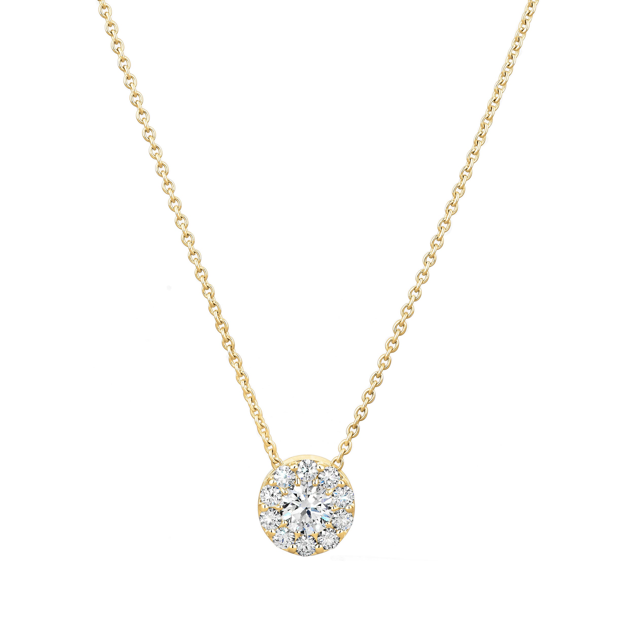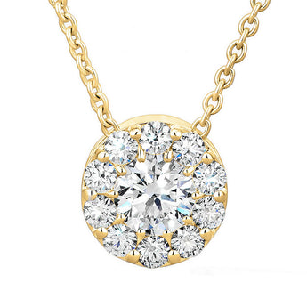 18 Karat Yellow Gold Designer Diamond Halo Pendant on a 16-18" Adjustable Cable Chain