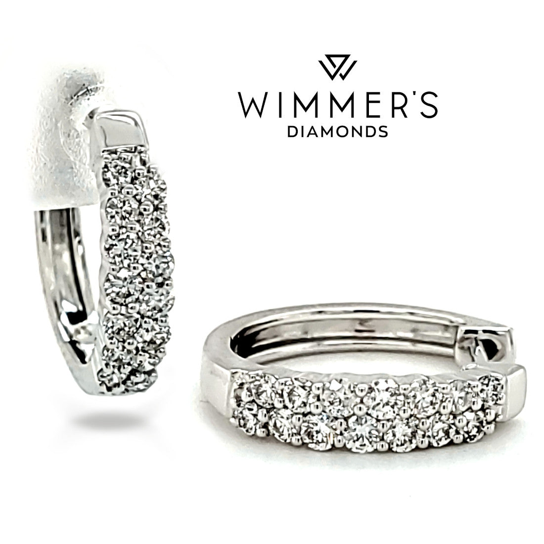 Two rows of glittering round diamonds dance down the front of these classic hinged hoops. Whether upgrading your work attire or adding a touch of glamour to casual looks, these mini hoops, featuring nearly half a carat of natural diamonds, effortlessly transition from day to night - ensuring you shine at every moment!
