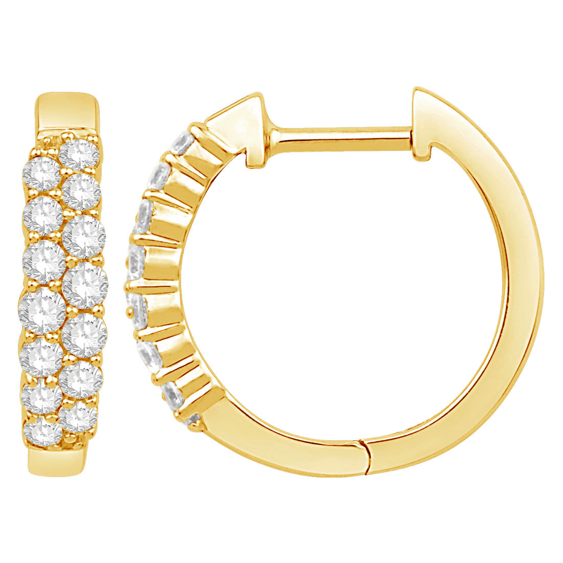 Two rows of glittering round diamonds dance down the front of these classic hinged hoops. Whether upgrading your work attire or adding a touch of glamour to casual looks, these mini hoops, featuring nearly half a carat of natural diamonds, effortlessly transition from day to night - ensuring you shine at every moment!