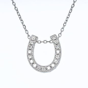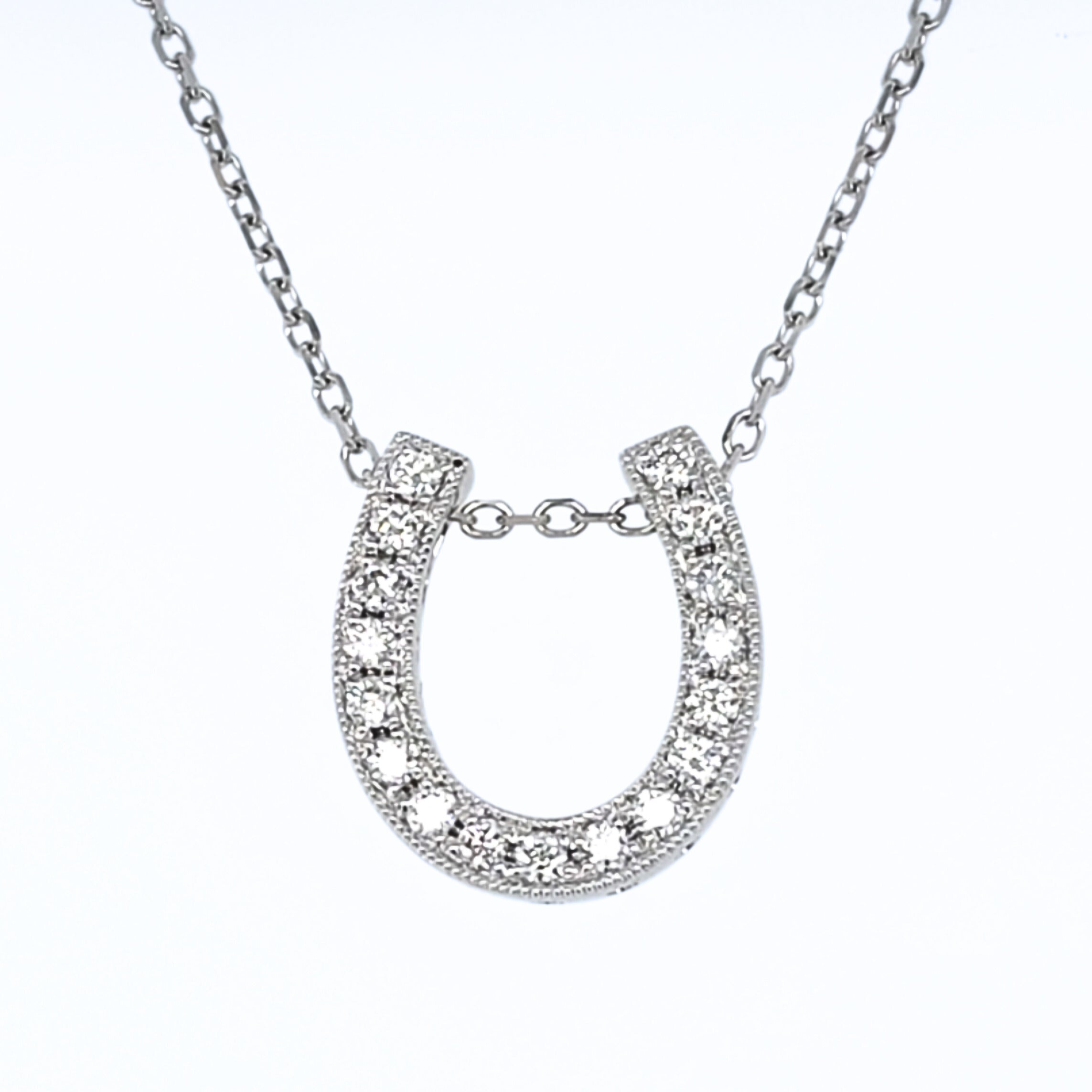 14 Karat White Gold Diamond Horseshoe Pendant on Diamond-Cut Cable Chain