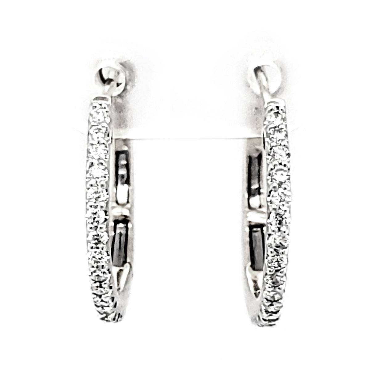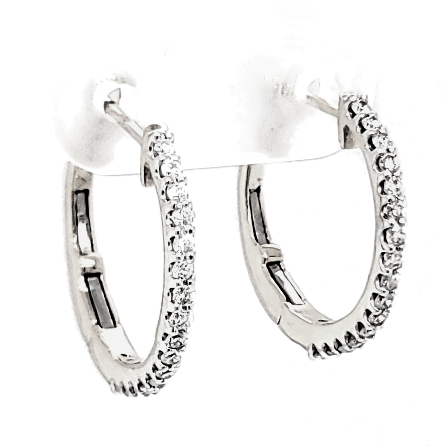 10 Karat White Gold Diamond Huggie Hinged Hoop Earrings