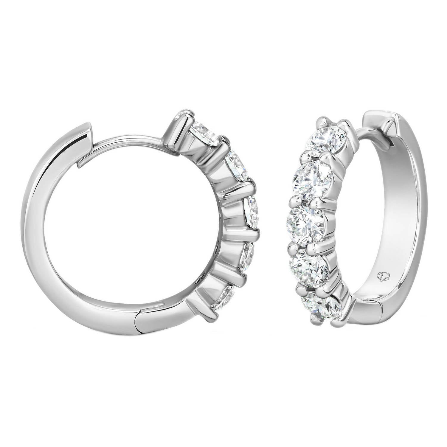 Mini hoops with major sparkle, these earrings sit close to the earlobe for a low-key style that delivers a dazzling diamond look.