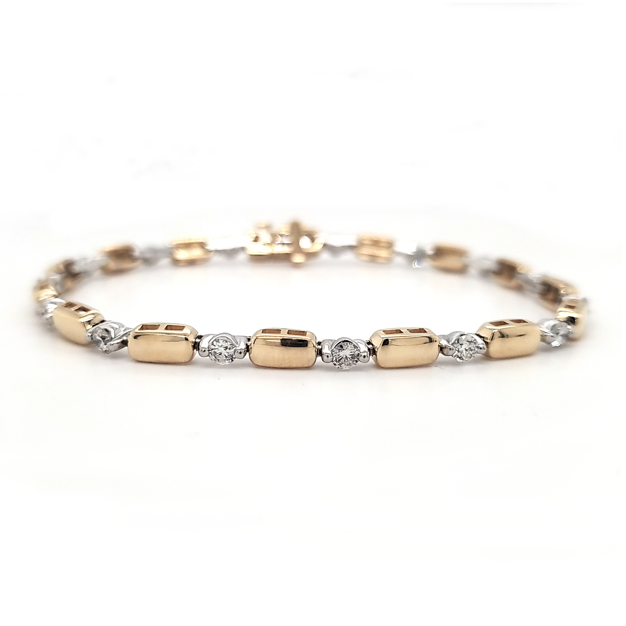 7" - 14 Karat Yellow/White Gold Alternating Diamond Tennis Bracelet