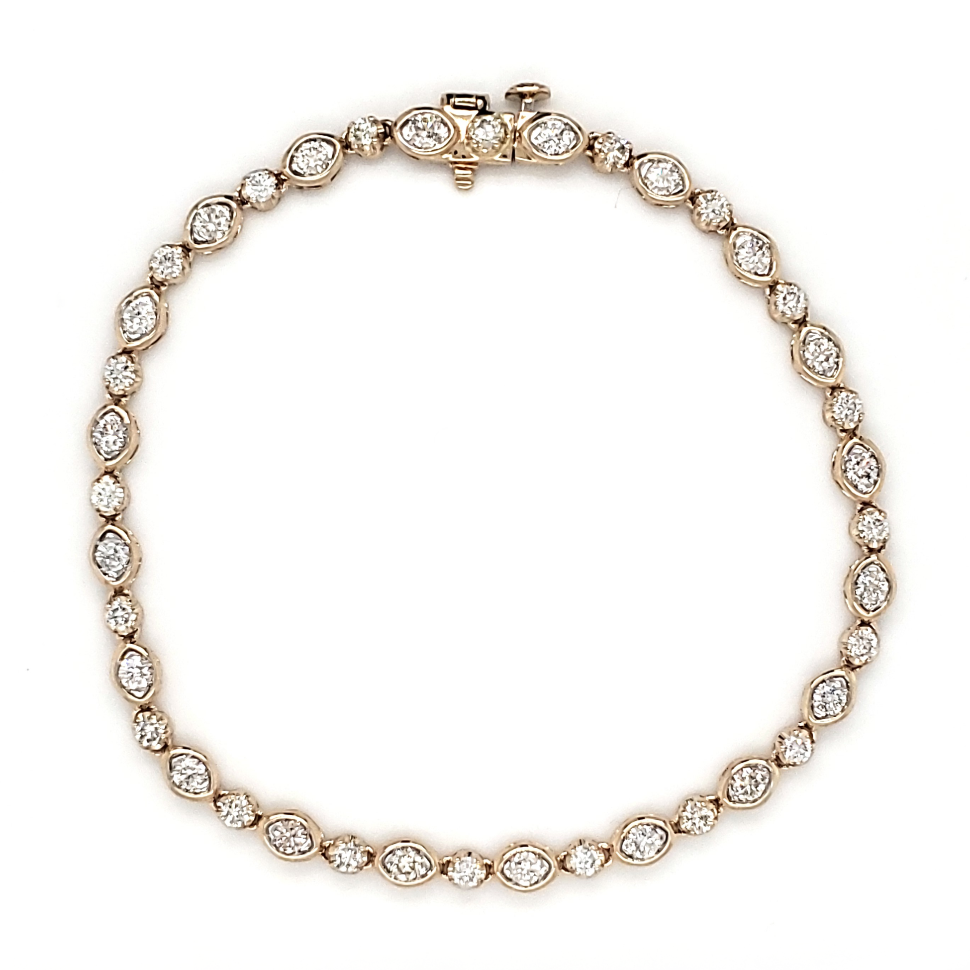 7" - 14 Karat Yellow Gold Alternating Marquise Diamond Tennis Bracelet