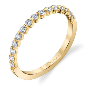 14 Karat Yellow Gold Single-Prong Stackable Diamond Wedding Band