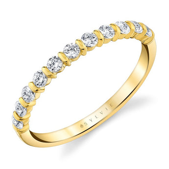 14 Karat Yellow Gold Bar-Set Stackable Diamond Wedding Band