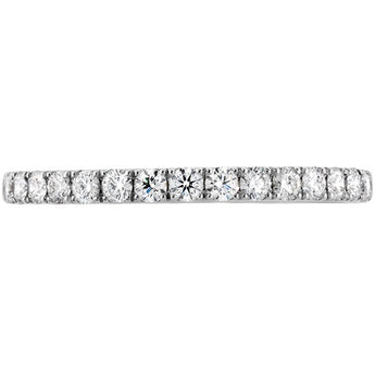 This timeless design features a row of perfectly cut Hearts on Fire diamonds resting in scalloped settings. The dainty dips allow the stones to sparkle from every angle, making it an ideal choice to wear alongside your engagement ring.