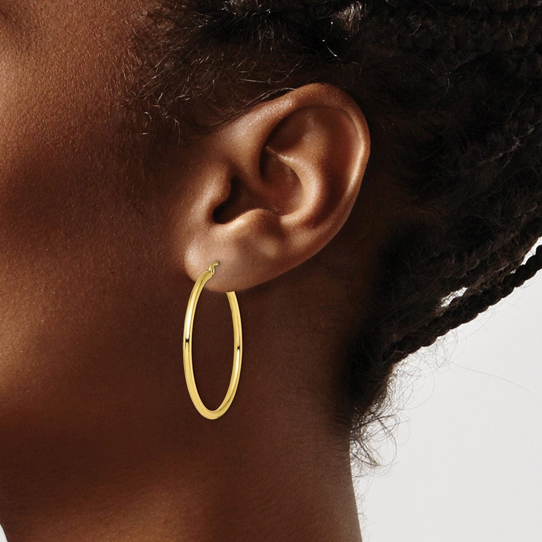 10 Karat Yellow Gold 2mm Large Round Hoop Earrings