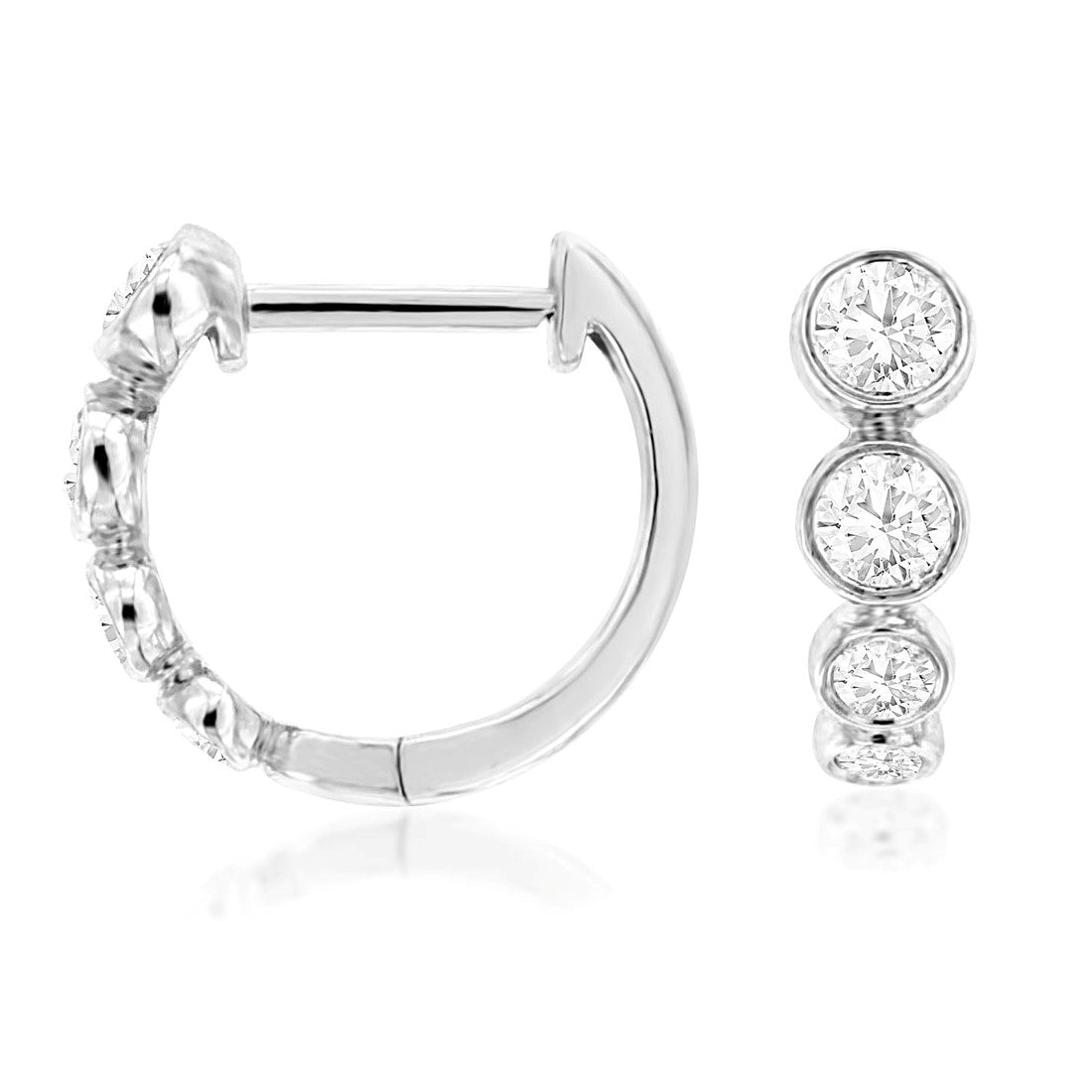 14 Karat White Gold Graduated Diamond Bezel Round Hinged Hoop Earrings