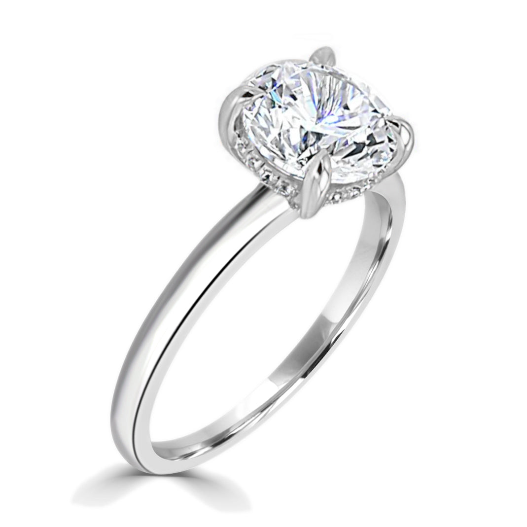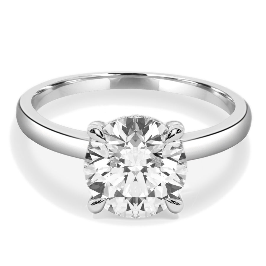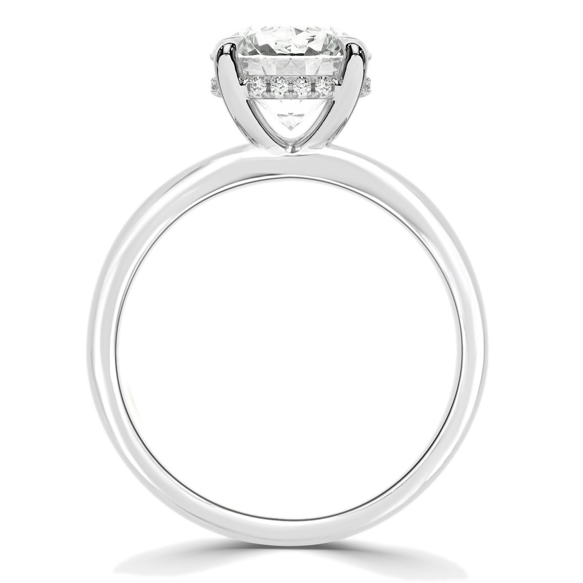 This classic solitaire engagement ring features a band of polished gold that widens slightly to effortlessly guide the eye to the dazzling center. A diamond hidden halo shines beneath your center stone, creating a symbol of your love that glitters from every angle.