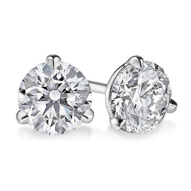 14 Karat White Gold 3-Prong Diamond Solitaire Stud Earrings