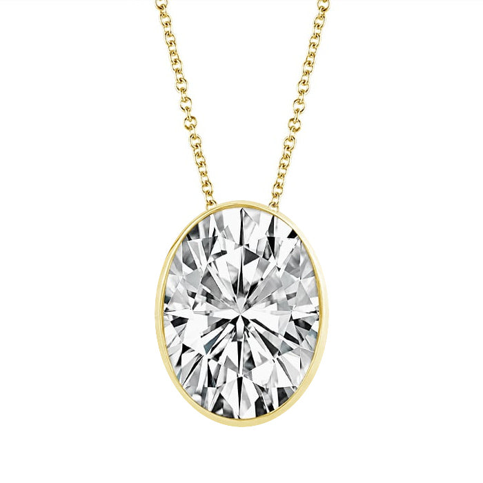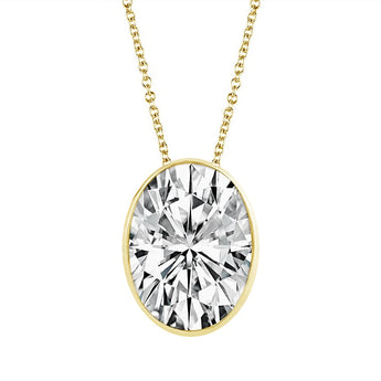 Modern sophistication meets classic sensibility in this pendant. A deliciously dazzlin oval brilliant shaped lab-grown diamond sits neatly in a bezel setting. This clean, delicate design suites people of all ages, and with its 18" chain adjustable down to 17 or 16 inches, it's the perfect piece to elevate any everyday look!